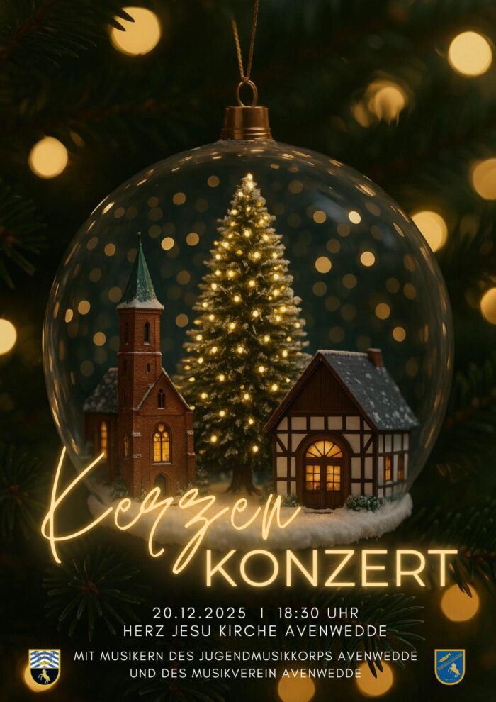 Kerzenkonzert 2025 10. November 20252. Dezember 2025 TabbiAktuelles, Auftritte, Home Am 20. Dezember 2025 findet um 18.30Uhr in der Herz-Jesu-Kirche in Avenwedde statt. Musiker aus dem Jugendmusikkorps Avenwedde und des Musikvereins Avenwedde gestalten gemein ein weihnachtliches Programm mit besinnlichen Momenten im Advent.