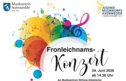 Das traditionelle Fronleichnamskonzert des Jugendmusikkorps (JMA) und des Musikvereins Avenwedde findet am 4. Juni auch dieses Jahr seine Fortsetzung. Seit 1977 findet das Konzert der beiden Avenwedder Blasorchester an deren Musikzentrum Stiftung Altewischer statt, doch die Wurzeln der Veranstaltung reichen […]