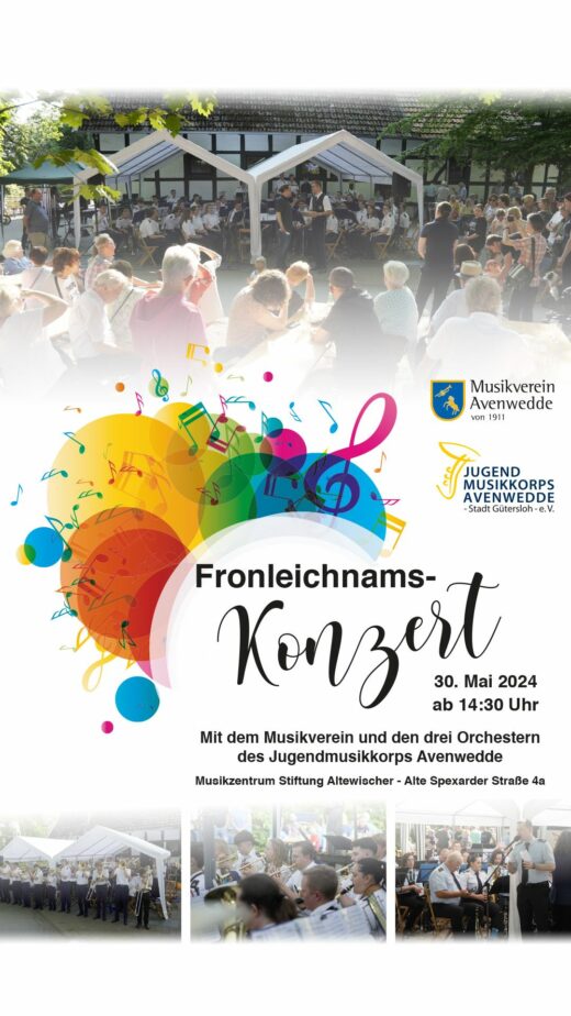 Gemeinsam mit dem Musikverein Avenwedde freuen wir uns, auch in diesem Jahr wieder unser vorsommerliches Fronleichnamskonzert am Musikzentrum Stiftung Altewischer veranstalten zu können.Die vier Avenwedder Orchester werden mit einem bunten Musikprogramm für einige unterhaltsame Stunden sorgen. Für das leibliche Wohl […]